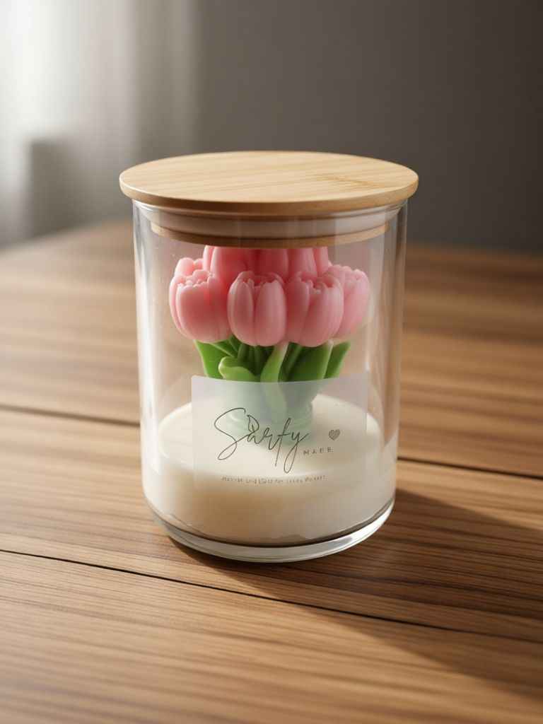 3 Red Flower Shape Scented Candle.