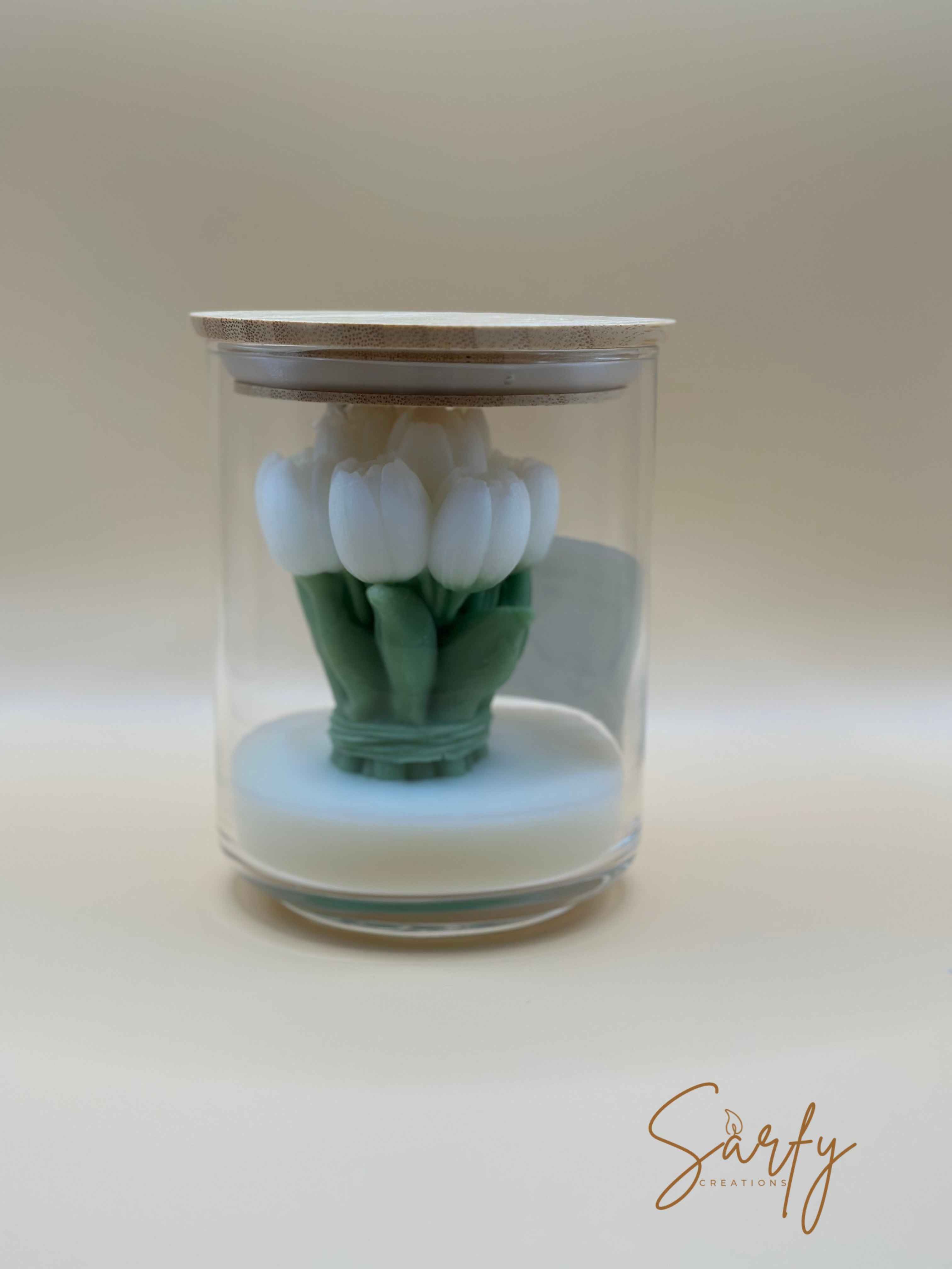 Size :13.5cmx10.5cm.Scent- French Vanilla(Fragrance Oil),Warm and inviting, our French Vanilla scent captures the essence of creamy vanilla beans, perfect for creating a cozy atmosphere."Soy and Coconut wax.Burning time upto 6 hours.Jar:Glass.This candle is made with coconut and soy wax. If you're allergic to coconut or soy or fragrance oil,this might not be the best choice for you.SAFETY WARNINGS: